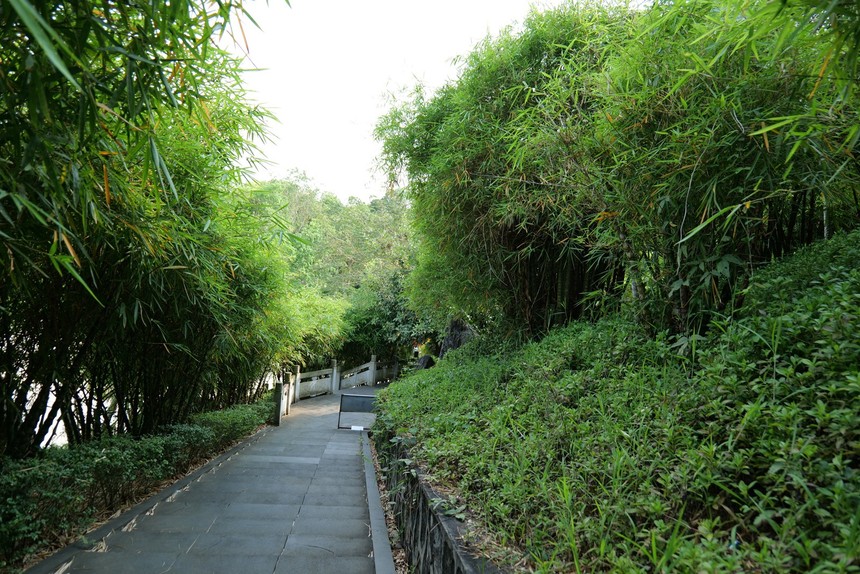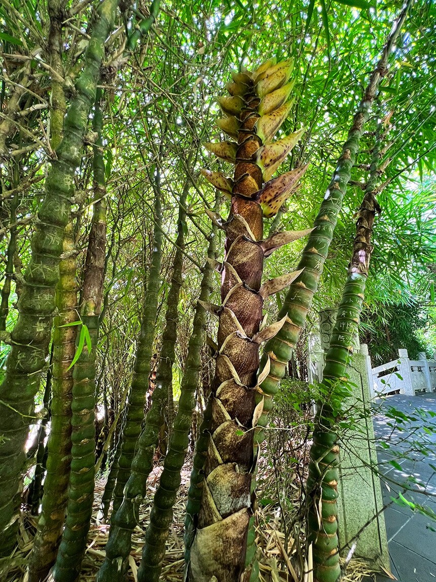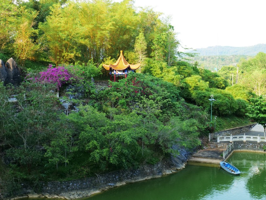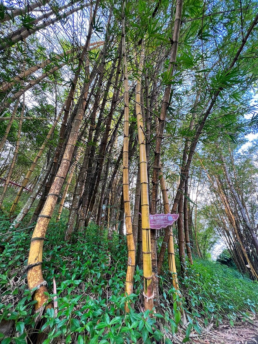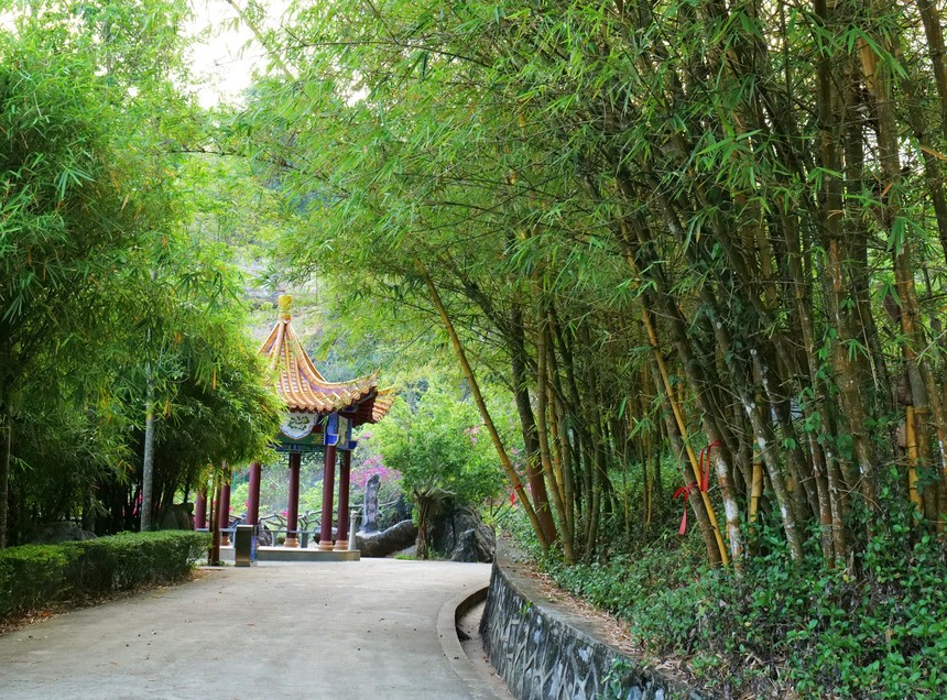 黃金碧竹林黃金間碧竹林原為廢渣堆場(chǎng),是礦山生態(tài)修復(fù)打造而成的一個(gè)景觀點(diǎn),將人文景觀和自然景觀和諧的融合在一起。黃金間碧竹是南方大型的叢生竹,竹子冠幅8-15m米,直徑粗達(dá)15公分,高度達(dá)12-20米,竹葉清脆婆娑,形態(tài)高雅,竹竿金黃色間有碧綠色條紋,光鮮奪目,在綠葉襯托下金光閃爍,相映成趣,是著名的觀賞竹之一,當(dāng)?shù)厝朔Q之為“金鑲玉”,象征金玉滿堂、福壽安康、節(jié)節(jié)高升,財(cái)源滾滾。整片竹林種植在山坡上,竹林景觀的打造與觀音洞文化相融合。林中建有游步道、魁星雙亭,供游客上山賞景、駐足、休憩。 Golden Bamboo Forest The Golden Bamboo Forest is a landscape site that integrates the human landscape and the natural landscape, created by ecological restoration of the waste slag yard. Golden Bamboo is a large clump bamboo in the south and one of the famous ornamental bamboos. The bamboo crown is 8-15m in width, 15cm in diameter and 12-20m in height; the bamboo leaves are crisp and swirling, and the shape is elegant; the golden-yellow bamboo poles have emerald green stripes, which are dazzling, and the golden light flashes against the green leaves. The locals call it "gold inlaid jade ", which symbolizes gold and jade, happiness, longevity, prosperity, and wealth. The whole bamboo forest is planted on the hillside, and the creation of the bamboo forest landscape is integrated with the Guanyin Cave culture. There are walking trails and Kuixing double pavilions in the forest for tourists to go up the mountain to enjoy the scenery, stop and rest.